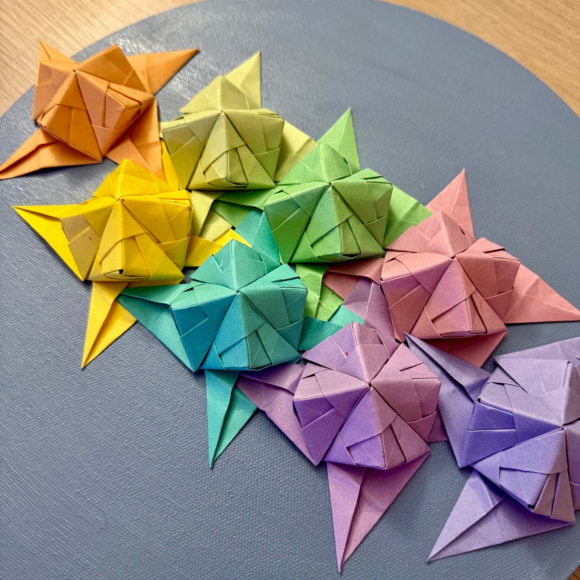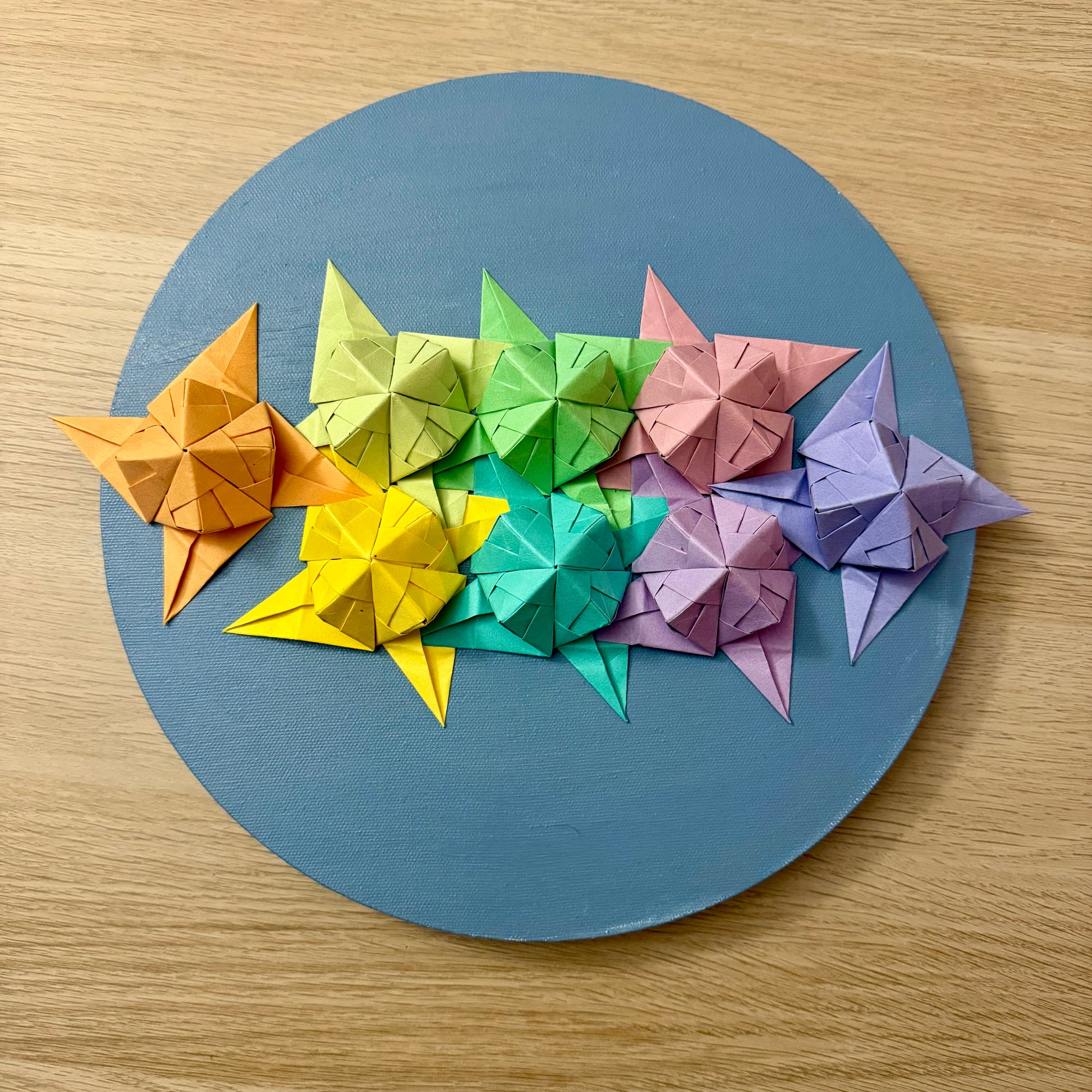 -> Piece is a origami artwork created with over 200 individual paper folds